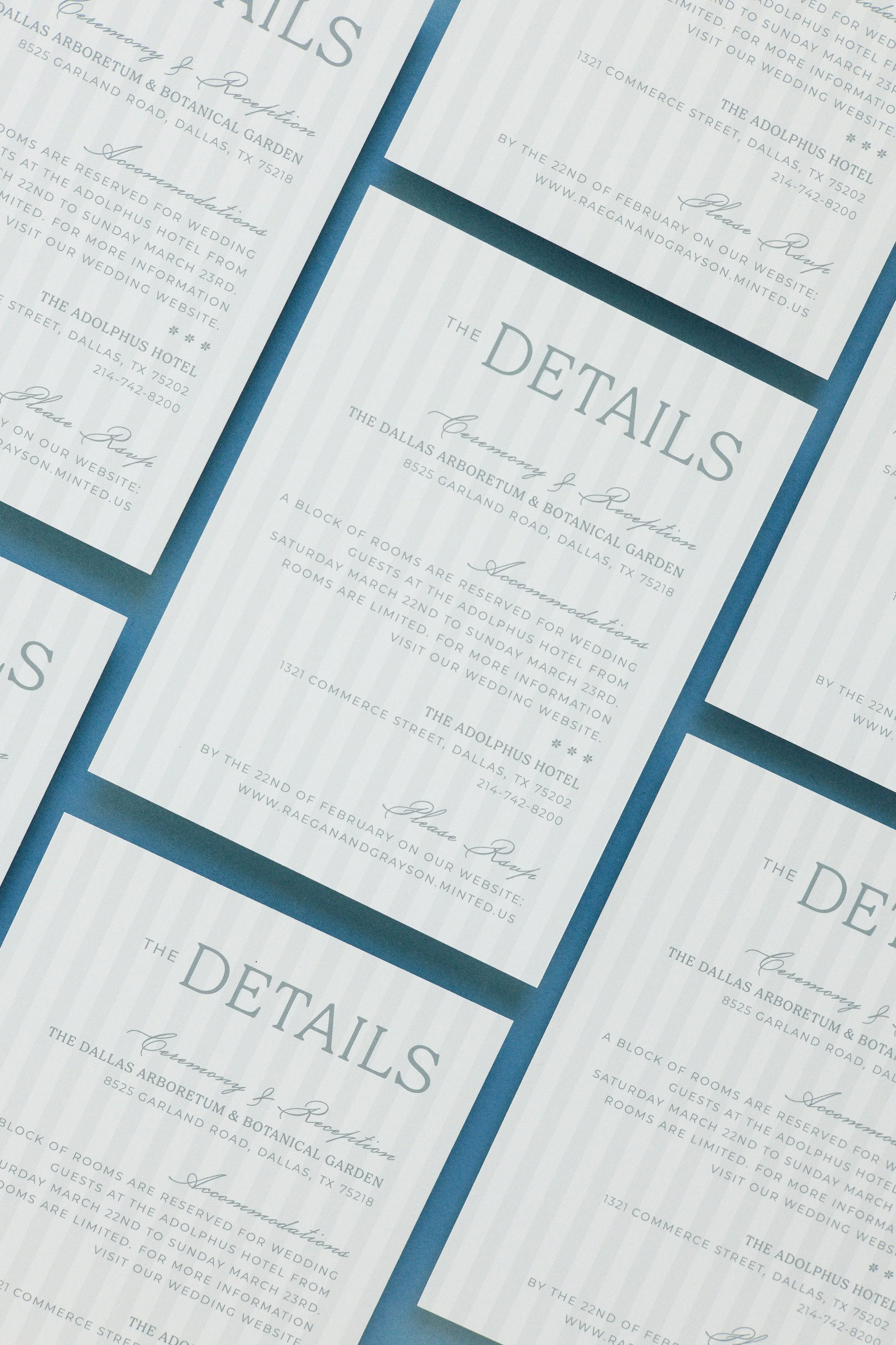 For those who love the upgraded details — silk ribbons, wax seals, vellum wraps, custom postage, or unique textures — your suite can be finished with luxe embellishments that make it unforgettable. These tactile elements transform your invitations into keepsakes, leaving a lasting impression long after they’re opened.